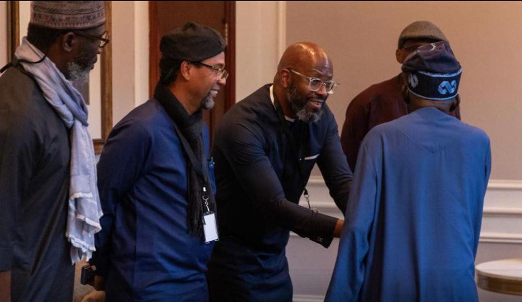 MTN Group CEO Ralph Mupita and MTN Nigeria Chairman, Ernest Ndukwe with President Tinubu